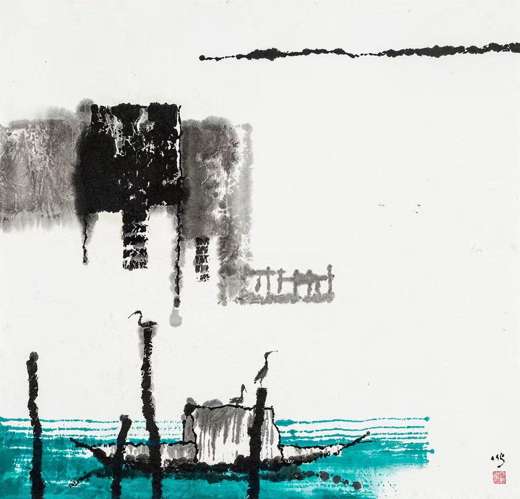 展览共展出作品约100件,包括水墨画创新作品、写生手稿等,以诗书画结合为特色,将写实、写意与抽象元素融合,既保留中国画笔墨精髓,又融入西方写实技巧和现代抽象表现手法。其作品兼具文化底蕴与现代气息,既有文人画的书卷气,又具备创新的艺术张力。